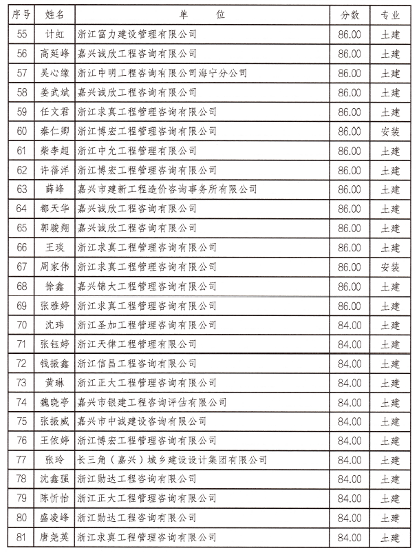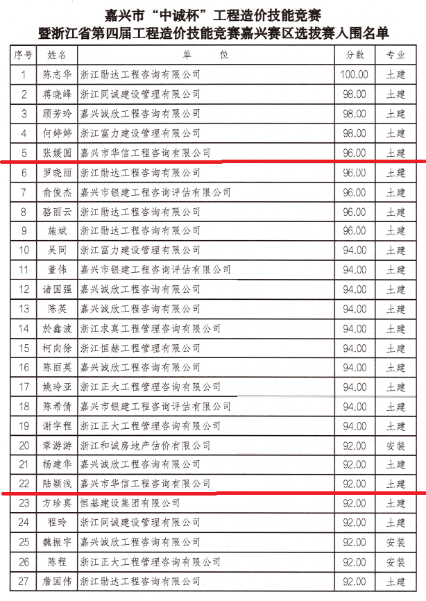 附件:嘉興市“中誠(chéng)杯”工程造價(jià)技能競(jìng)賽暨浙江省第四屆工程造價(jià)技能競(jìng)賽嘉興賽區(qū)選拔賽入圍名單